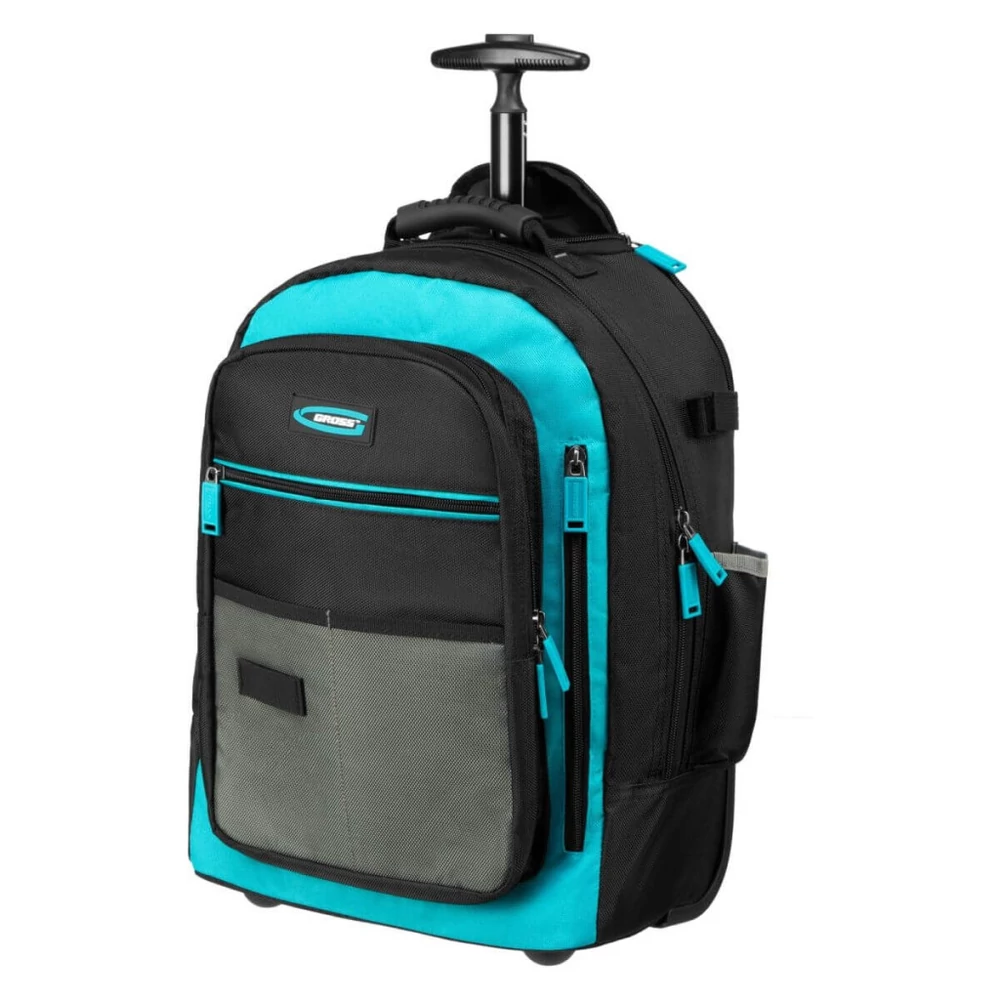 A Gross márka garancia a tökéletességre. A márka származási országa Németország. A Gross termékek mindegyike kiváló alapanyagokból, remek kidolgozással, strapabíró de kényelmes felhasználói élményt nyújtó alkalmazásokra készült.A Gross 90275 hátizsák 440x350x250mm méretű, visszahúzható fogantyúval és kerekekkel kéziszerszámok tárolására és szállítására szolgál.Két rész, 16 belső és külső zsebbel, minden szükséges szerszám kényelmesen elfér egy projekthez. A hátizsák kényelmes kirándulásokra és utazásokra, egyéb szabadidős tevékenységhez is.Előnyök- tartós, 600 D és 1680 D poliészterből készült hátizsák, strapabíró műanyag görgőkkel és támasszal, széles vastagon párnázott válltámasszal és fogantyúval - kényelmes szállítás - a kerekek és a teleszkópos fogantyú megkönnyíti a hátizsák mozgatását.- az ergonomikus vállhevederek tervezésében a gerincterhelés csökkentése volt fókuszban