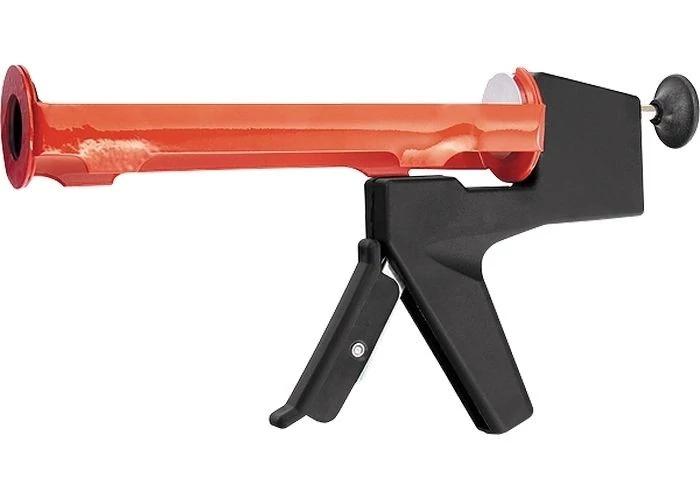 Félig nyitott fém tok sima hengeres tolóruddal.Szabványos 9"-os 310ml-es tubusok kinyomására alkalmas. A műanyag fogantyút az ellensúlyt termelő test közepére tolja, így csökkenti a munka közbeni terheléseket (előtolás)