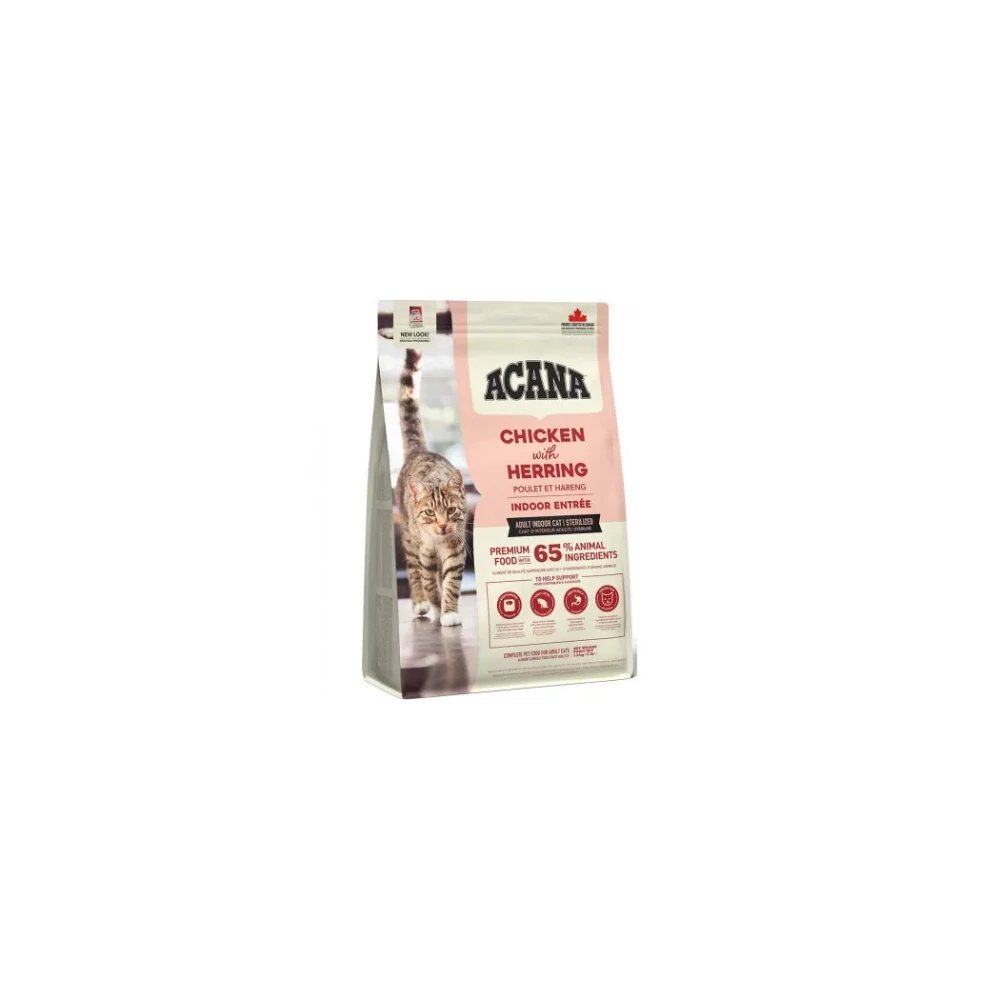 Teljes értékű száraz eledel lakásban tartott felnőtt macskák számára Az ACANA Indoor Entrée receptje szabadon tartott csirkéből, pulykából, heringből és ízletes nyúlból áll. A húsok mellett tápanyagokban dús belsőségeket és emészthető csontokat is megfőzünk, ezért a tápanyagok jelentős része természetes forrásból származik. Egy lakásban élő macskának, főként, ha sterilizált, hasonlóan a vadon élő rokonokhoz fehérjékre és zsírokra van szüksége, de mindez könnyedebb, alacsony kalóriatartalmú étrendben. A friss csirke és a nyers pulyka, az ízletes, nyers nyúl és a nyers hering garantálják a változatos fehérje-és zsírforrásokat. A belsőségeknek (máj, szív, zúza) és az egészben felhasznált halnak köszönhetően a tápanyagok jelentős része természetes forrásból származik. Előnyök: Szőrlabda kontroll Bőséges állati fehérjékben és rostokban, melyek csökkentik a szőrlabdák kialakulásának kockázatát. Súlykarbantartás A fehérjékből és zsírokból származó kiegyensúlyozott kalóriamegoszlás, továbbá a természetes forrású L-karnitin segíti az ideális testsúly fenntartását. Egészséges szőr és bőr Az Omega 3 és Omega 6 zsírsavak kiegyensúlyozott aránya alapja az egészséges bőrnek és a csodálatos szőrzetnek. A HÚSMATEK mutatja meg valójában egy termék minőségét MENNYIRE ÁLLATI? 65 % minőségi állati alapanyag Az esszenciális fehérjék, zsírok, vitaminok és ásványi anyagok természetes forrását biztosítja. MENNYI FRISS vagy NYERS? 40 % friss vagy nyers baromfi, hering és nyúl Összetétel Friss csirke (18%), dehidratált csirke (16 %), dehidratált hering (15 %), zabdara, egész borsó, csirkezsír (5 %), őrölt japánfű, egész zöldlencse, nyers pulyka (4 %), nyers egész hering (4 %), egész csicseriborsó, egész vöröslencse, lencserost, nyers nyúl (1 %), friss csirkebelsőségek (máj, szív, zúza) (1 %), nyers pulykamáj (1 %), szárított moszat, friss egész pézsmatök, friss egész úritök, friss egész tőzegáfonya, friss egész kék áfonya.