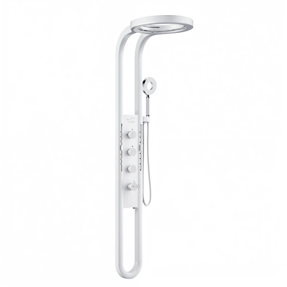 Rozsdamentes acél zuhanypanel – tartós és időtálló választásA zuhanypanel rozsdamentes acélból készült, amely garantálja a hosszú élettartamot és a prémium megjelenést. A fehér szín modern eleganciát sugároz, amely bármely fürdőszobai környezethez illeszkedik.