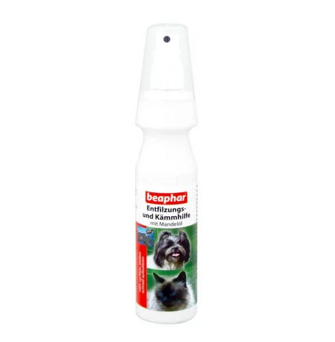 BEAPHAR szőrlazító spray A Beaphar szőrlazító spray mandulaolaj tartalma a szőrzetet könnyen fésülhetővé teszi. Segít megelőzni a szőr filcesedését, a szőrnek lágy, selymes fényt ad. Használati útmutató: Használat előtt jól rázza fel a palackot, majd kb. 30 cm távolságból permetezze a bundára. Kb. 10 perc elteltével alaposan fésülje ki. Tartós filcesedés esetén a rendszeres spray kezelést speciális filcbontó sampon (akár többszöri) használatával készítse elő. Ne használja a szemek közelében, ne lélegezze be a permetet. Jól szellőző helyen használja. 25 C-fok alatti hőmérsékleten tárolja!