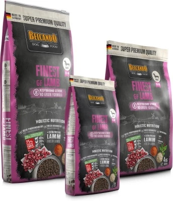 A Belcando Finest GF Lamb kis- és közepes termetű rasszba tartozó, kifejlett, válogatós, gabonára érzékeny kutyák számára készült teljes értékű kutyaeledel. Mint különlegesség, a BELCANDO FINEST GF Lamb -ot a még jobb ízletesség érdekében, egy speciális szósszal vonták be. Amennyiben három egység BELCANDO FINEST GF Lamb-ot egy egység 40 - 50 °C-os meleg vízzel (3:1 arányban) gondosan összekever, akkor egy különösen ízletes szószbevonat képződik az eledelen. Ez kitűnő ínyencség a válogatós kutyák számára. A BELCANDO FINEST GF Lamb szárazon etetve is különösen ízletes. A zsák oldalán feltűntetett táblázat a felnőtt, normál igénybevételnek kitett, illetve aktív kutyák napi táplálék szükségletének ajánlott átlagértékeit tartalmazza. A helyes eledelmennyiséget a legjobban a kutyák súlyának rendszeres ellenőrzésével lehet meghatározni. Mindig álljon a kutya rendelkezésére friss ivóvíz.