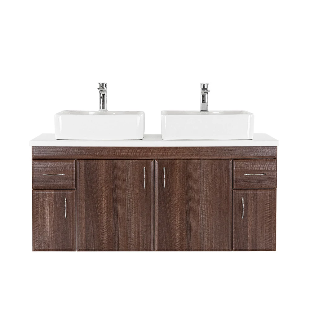 - Letisztult, Aida dió színű felület, fehér mosdópulttal.