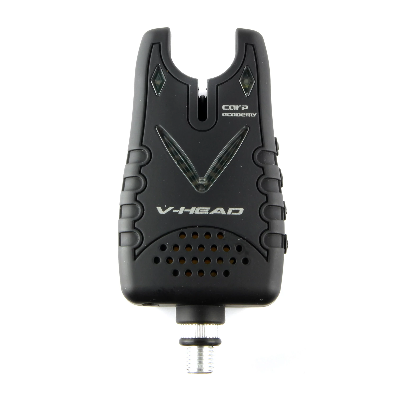 Kapásirányt jelző LED sorral, magasítóvillákkal kiegészített elektromos kapásjelző! V-ledsor jelzi a kapás irányát. Húzás esetén felfelé futnak a ledsoron a lámpák és egy hangjelzés hallható, két hangjelzés és lefelé futó ledek jelzik az ejtős kapásokat. Alacsony áramfelvétel, nagyméretű jelző LED és modern kivitel jellemzi ezt a remek kapásjelzőt, számos beállítási lehetőséggel. 10 mp-es kapás utánjelzéssel. A KAPÁSJELZŐ HASZNÁLATA: Helyezzen az adó egységekbe a 9V-os elemet, polaritásnak megfelelően. A bekapcsoláshoz nyomja meg a jobb alsó oldalgombot, a készülék két rövid hangjelzéssel és a LEDek kétszeres felvillanásával jelez. Ismételt megnyomásnál egy hosszabb hangjelzést követően kikapcsolható. A V gomb megnyomásával nyolc szinten változtatható a hangerő, amelyet a LEDsor folyamatosan jelez. A maximális hangerő elérését követően a készülék a csendes tartományba ugrik vissza. A T gomb megnyomásával nyolc különböző hangszín állítható. Az S gomb megnyomásával nyolc különböző érzékenység állítható, a gomb 2 mp-ig történő megnyomásával be- és kikapcsolható a kék színű éjjeli fény. V-LEDsor jelzi a kapás irányát. Húzás esetén felfelé, ejtős kapásnál fentről lefelé futnak a fények. Amennyiben az akkufeszültség 5V alá csökken, a kék LED villogni kezd.