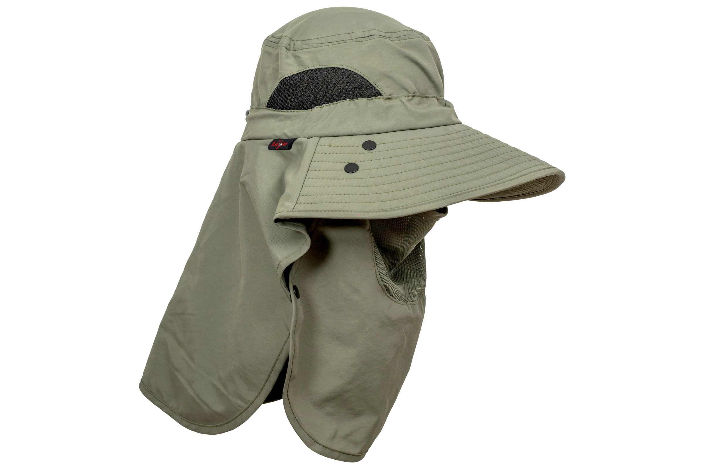 Különösen a nyári horgászatok során praktikus horgászkalap. Míg a nagy átmérőjű silt az arcot, addig a kalap hátsó részén található rész a tarkót védi a káros napsugaraktól. A fejfedő első felére patentokkal eltávolítható, hálós arcvédő került. A fejtetőn lévő felsőrész a fejmérethez igazítható, valamint szellőző, rácsos kialakítást kapott, így nagy melegben is kényelmes viseletet biztosít. Nyakba akasztható, így viharos szélben sem kell attól tartani, hogy lerepül a fejről.