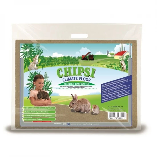 Klímabarát Rágcsálószőnyeg (L 45x95cm) Chipsi Klímabarát Rágcsálószőnyeg. Természetes szigetelő alátét, rágcsálók részére. 100% kezeletlen kender rostból készült alátét. Gyakorlatilag teljesen pormentes. Kiválóan nyeli el a nedvességet és köti meg a kellemetlen szagokat. Játékra, rágásra és fészekrakásra motiválja a kedvenceket. Kiválóan alkalmas allergia esetén, mivel pormentes, kellemes, tiszta környezetet biztosít. 100%-ban biológiailag lebomló és komposztálható. Származási hely: EU Száraz helyen tárolandó!