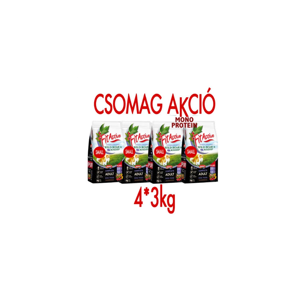 CSOMAGAJÁNLAT: FitActive PURE SMALL Hypoallergenic WILD BOAR-ROSEHIP (vaddisznó,csipkebogyó) - 4 x 3kg