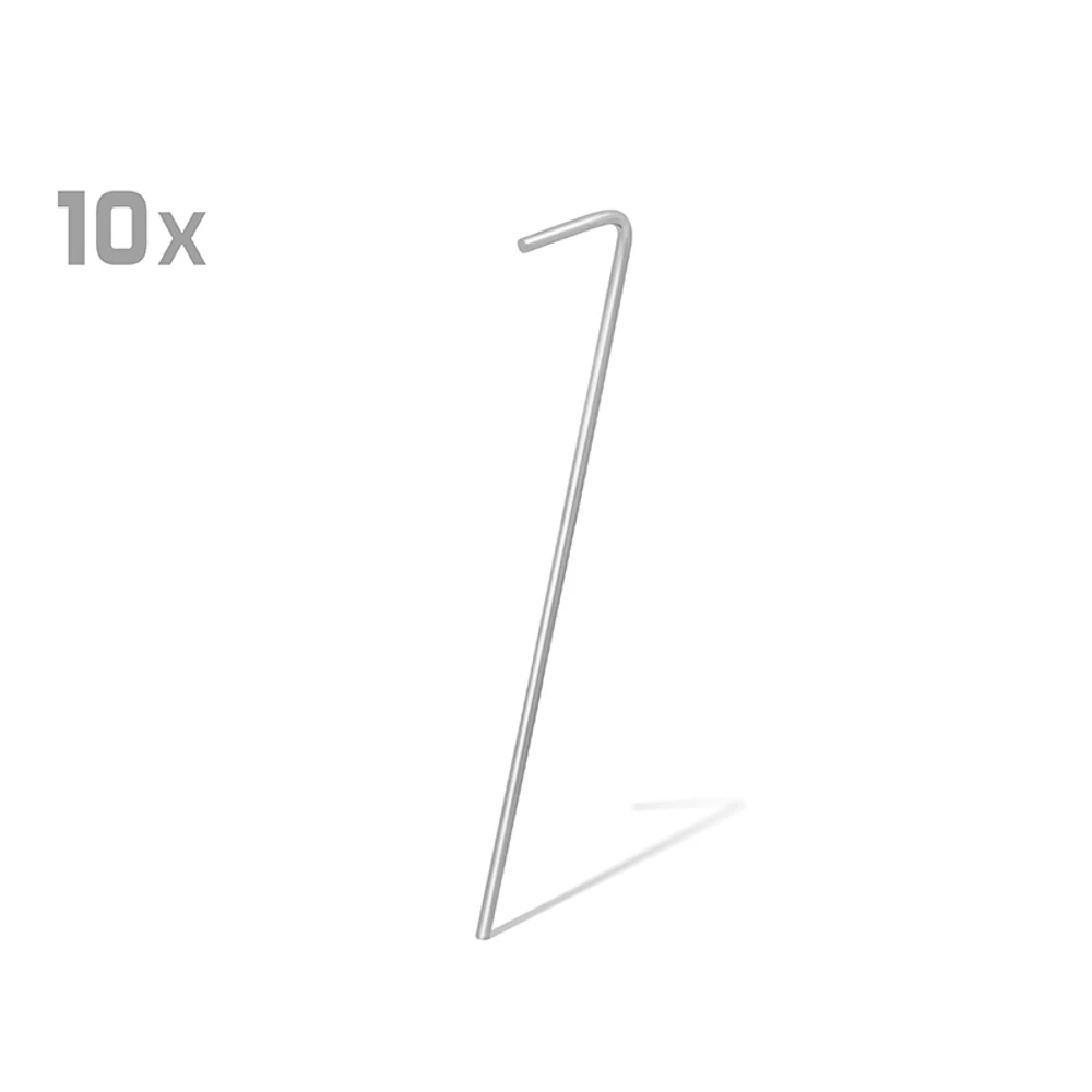 A Delphin EazyPEGS egy cövekkészlet ernyő, sátor vagy más menedékek rögzítésére különböző tereptípusokon. Masszív fémből készültek, amely hosszú élettartamot és ellenállást biztosít a külső hatásokkal szemben. Univerzális formájuk könnyedén áthatol a legtöbb talajtípuson. A csomag 10 db cöveket tartalmaz, visszazárható műanyag tasakban. Műszaki adatok: Anyag: Acél Átmérő: 3,15 mm Magasság: 16 cm Kampó hossza: 2,5 cm