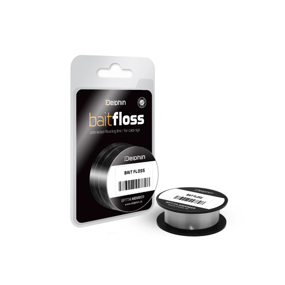 A legmagasabb osztályú előkeanyagok közé tartozik. A Bait floss tiszta Dyneema® szál. A zsinór úszós és szinte láthatatlan a vízben. Feltűnésmentes végszerelékek készítéséra alkalmas zsinór POP UP bojlikkal. Ideálisan kombinálható a Delphin 6K előkezsinórral. A Dyneema® a Royal DSM N.V bejegyzett márkaneve.