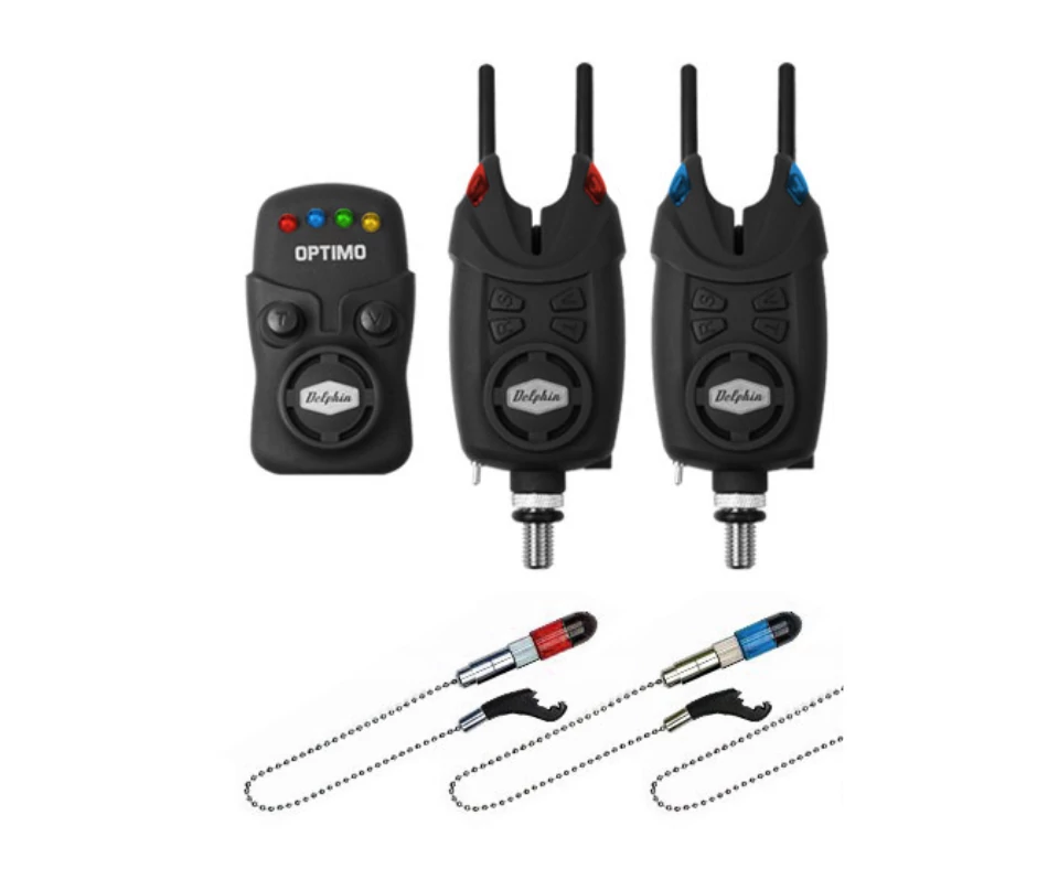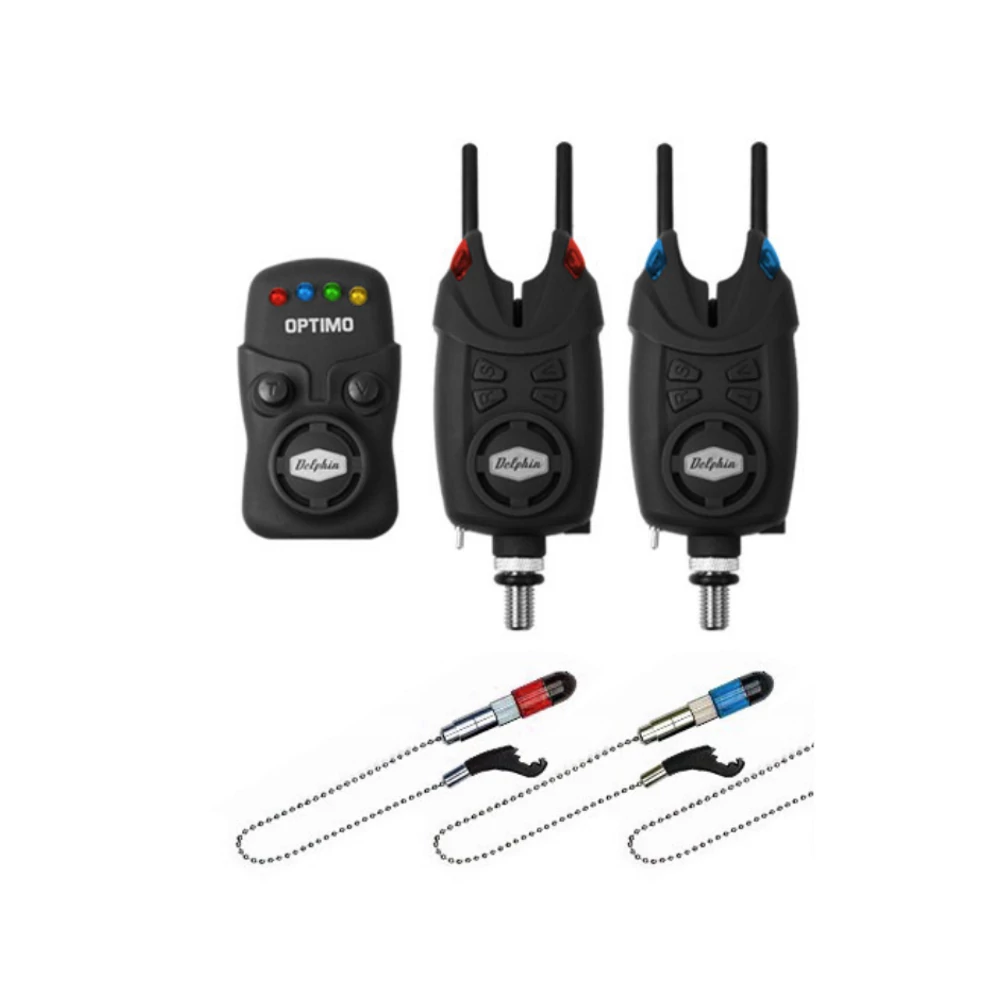 A Delphin Optimo 9V kapásjelző  vevő szettje ahogy a neve is mutatja,hogy 9V elemmel működik,mely garantálja tartósságát amely a szett legnagyobb előnyei közé tartozik.Magas szintű gyártási technológiával készültek a jelzők,rossz időjárásnak és esőnek ellenállnak.Egyszerűen és könnyen használhatók,a hangerő(lehetőség van a néma üzemmódra),és a hangszín szabályozható,valamint a kapás érzékenysége,melyet a horgászok értékelni fognak.A szett lehetőséget nyújt még mind hang-mind fény alapú jelzésre 200 méteren belül.A világítós swingerek részére tartalmaz egy csatlakoztatót is. A szett tartalma:vevő,kapásjelző,swinger és Snag Gear, a megvett kapásjelzők számával megegyező számban.