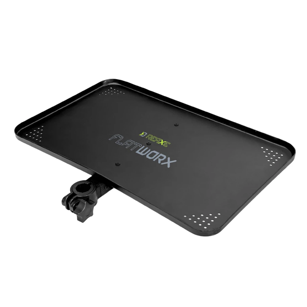 Ez egy jól bevált feeder tálca az új, szemet gyönyörködtető REAXE versenyhorgász kialakításban. Ezt a tálcát elsősorban feeder székek tartozékaként tervezték, és egy univerzális, 25 mm átmérőjű rögzítővel van felszerelve. A markolat tartalmaz egy belső műanyag csatlakozót, amelyet, ha eltávolítunk, lehetővé válik a tálca 36 mm átmérőjű lábakhoz való rögzítése is. Hasonlóképpen, akár 19 mm oldalhosszúságú négyzet alakú profilokhoz is rögzíthető. Ennek a sokoldalúságnak köszönhetően a tálca rögzíthető a legtöbb piacon kapható szabvány székhez. Annak ellenére, hogy feeder technikával történő horgászatra tervezték, hagyományos pontyozó vagy egyéb székekre is rögzíthető. A FlatWORX felbecsülhetetlen segítőtárs szerelékek kötéséhez, etetőanyag elkészítéséhez, vagy egyszerűen csak ahhoz, hogy a horgászatkor szükséges eszközöket rajta tároljuk, amelyek szó szerint mindig kéznél lesznek. A kerülete mentén megemelt élek megakadályozzák, hogy az apró tárgyak a földre essenek. A tálca sarkai lekerekítettek, ami megakadályozza az éles sarkoknál fellépő esetleges kellemetlen sérüléseket. Ezenkívül minden sarokban több lyuk is található. Így biztos lehet benne, hogy esőben vagy folyadékkiömlés esetén a folyadék nem marad a tálcán, hanem garantáltan lefolyik arról anélkül, hogy a tálcát le kellene venni a székről. A FlatWORX egy univerzális segédeszköz, amely lehetővé teszi, hogy gyorsan tudjon alkalmazkodni minden szituációhoz a vízparton, és hogy mindig kéznél legyenek a szükséges dolgai. Technikai paraméterek: Méret: 50x30cm Munkalap él magassága: 12 mm A rögzítő elem átmérője kerek profilokhoz: 25 mm A rögzítő elem átmérője négyzet alakú profilokhoz: 19 mm