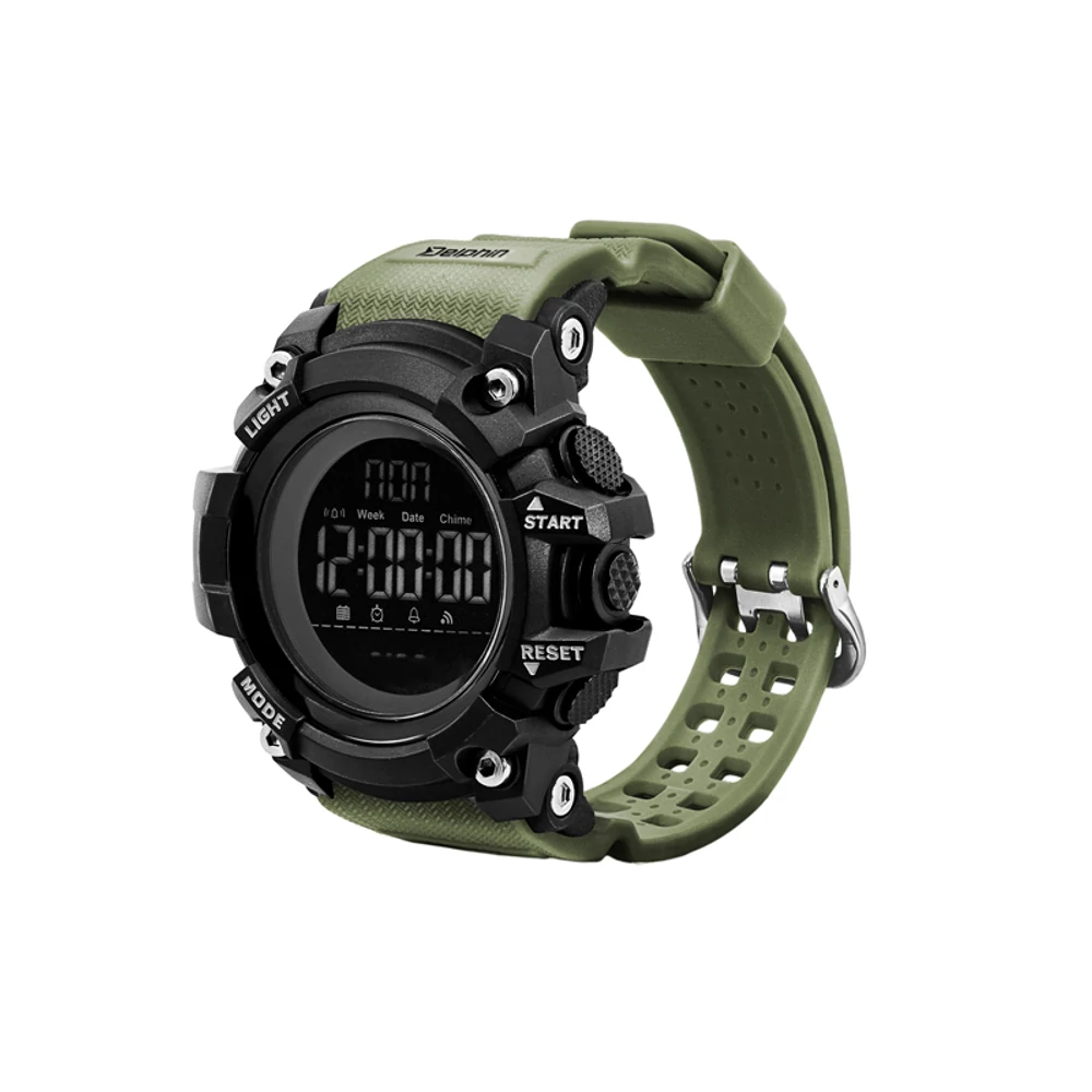 Digitális óra számos hasznos funkcióval, mely robusztus kialakításának köszönhetően minden csuklón feltűnik. Kialakításuk tökéletes minden igazi vadász számára, legyen szó horgászról, vadászról, de minden aktív emberről is. Ugyanakkor stílusos kiegészítőkké válnak az alkalmi viselethez és bármilyen más alkalomhoz. A szokásos időkijelzés mellett a Delphin WIRUS óra számos nagyszerű funkcióval rendelkezik, mint például ébresztőóra, időzítő, stopper, opcionális 12 és 24 órás formátum vagy kettős idő. Lehetőség van a Light gombbal a 13 számjegyű LCD kijelző háttérvilágítására is, aminek köszönhetően még éjszakai horgászat vagy egyéb tevékenységek közben sem veszíti el az időérzékét. A gumipánt nagyon kellemes tapintású, és hossza is széles tartományban állítható. Ez biztosítja, hogy bármilyen vastagságú csuklóra illeszkedjenek. A pánt sötétzöld színű kialakítású, amely tökéletesen illeszkedik a természetes környezetbe anélkül, hogy zavaró elem lenne. Maga az óra teste fekete és masszív, kiváló mechanikai sérülésekkel szembeni ellenállás jellemzi. A nemzetközi skála szerint ez a modell 50 méterig vízálló. Ez a jelölés megfelel minden olyan órával szemben támasztott követelménynek, amely rövid ideig víznek lehet kitéve, például eső vagy zuhany (forró vizet nem szabad használni). Ugyanakkor könnyen pózolhatnak a fogással a vízben, amikor rövid ideig érintkeznek a vízzel. Műszakai paraméterek: Számlap átmérő: 53mm Elem: CR2032