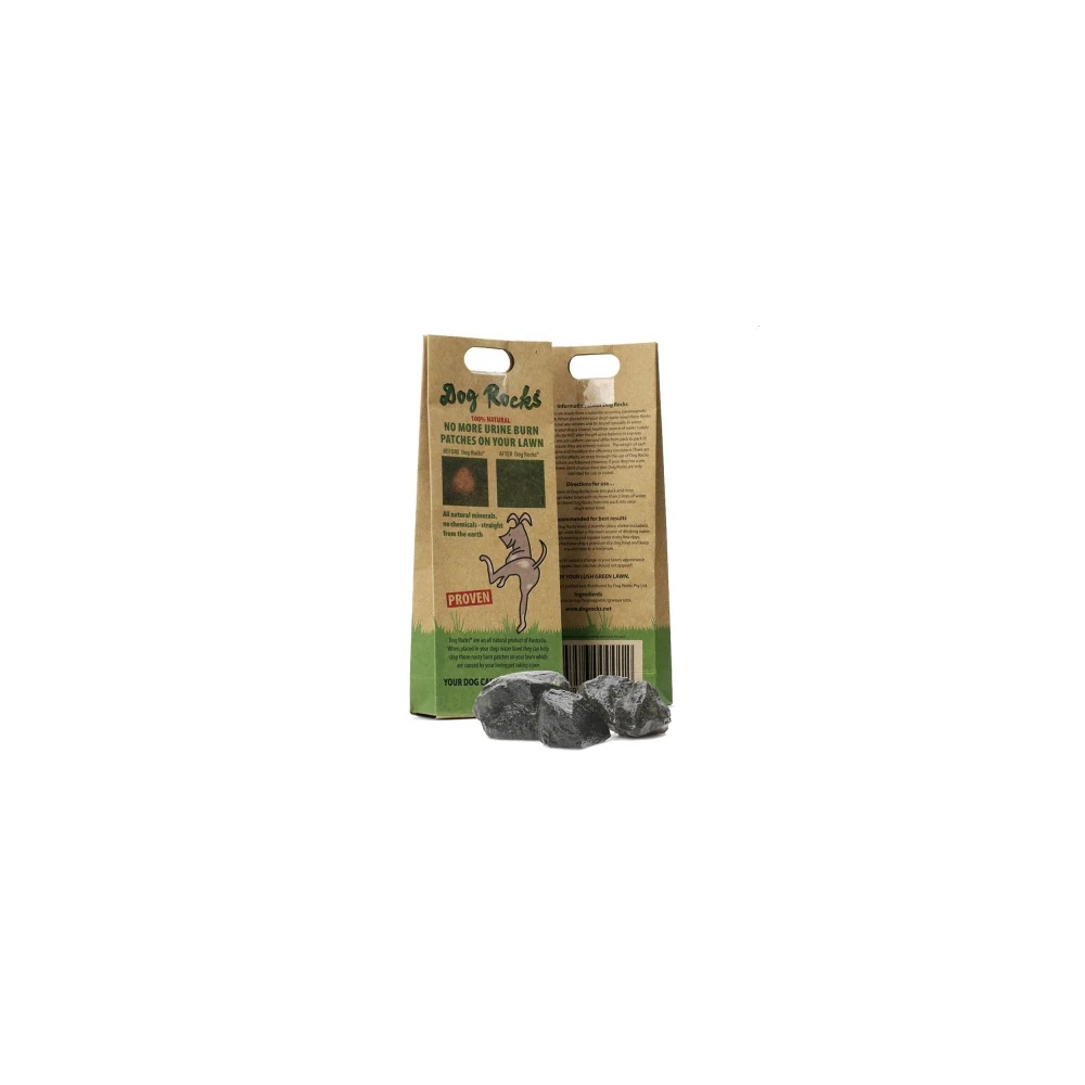 A kutya vizestáljába helyezett vulkanikus eredetű Dog Rocks leköti a szennyeződéseket mint amilyenek például a nitrátok - a vízből, és így segít megakadályozni a kiégett foltok létrejöttét a gyepen és a cserjéken. Ezeket ugyanis a vizelet magas nitrogen tartalma okozza, amely tömény műtrágyaként hat a növényekre. Gyakorlatilag vízszűrőként működik, így a kutya egészségesebb vizet iszik. A Dog Rocks 100%-ban természetes eredetű paramagnetikus kő, amelyet a fejlett kertkultúrával rendelkező Angliában is sok ezren használnak már...- A Dog Rocks nem tartalmaz vegyszert vagy más hatóanyagot- A Dog Rocks nem változtatja meg a vizelet pH értékét, és nincs semmilyen más mellékhatása sem- A Dog Rocks egy különleges természetes kő, mely felületaktív potenciálja révén megköti a szennyeződéseket az ivóvízből- használata egyszerű, két havonta kell cserélni- A Dog Rocksot már évek óta széles körben használják Ausztráliában és Angliában, nagyon jó tapasztalatokkal.A Dog Rocks természetes eredete miatt nem egyforma méretű köveket tartalmaz, de súlyuk és így hatásuk mindig azonos.Használati utasítás:Vegye ki a köveket a csomagolásból és öblítse le. Töltse meg a kutya vizestálját maximum 2 liter vízzel. Tegye a csomagban lévő összes lemosott követ a vizesedénybe.Cserélje ki a köveket 2 havonta. (Naptárcimke a csomagban.)Javaslatok a legjobb hatás eléréséhez:Bizonyosodjon meg róla, hogy a kutya főleg a vizesedényből iszik. Töltse fel a tálat minden este, és cserélje ki teljesen a vizet pár naponta. A maximális hatás eléréséhez jó minőségű tápokat használjon, és csökkentse a vörös húsok mennyiségét a minimumra. Kezdje időben használni a köveket, mert a teljes hatás kialakulásához 5 hét kell.Ha a kutya kiveszi a köveket a tálból, akkor egy kannát töltsön fel maximum 2 liter vzzel, tegye bele a köveket, és ebből adagolja az ivóvizet. A továbbiakban ugyanúgy járjon el, mint a vizestányérba helyezett kövek esetében.