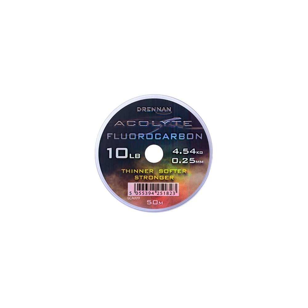 Az Acolyte Fluorocarbon egy új, csúcstechnológiás anyagból készül, amely vékonyabb, puhább és erősebb a hagyományos fluorokarbonoknál. A 100%-ban tiszta fluorokarbon kiemelkedő teljesítményt és láthatatlanságot biztosít, mivel törésmutatója rendkívül közel áll a vízéhez – ezáltal a lehető legjobb előke anyag. A többszörös világbajnok Alan Scotthorne és a neves nagyhal-specialista Daniel Woolcott is tesztelte és használta, bizonyítva, hogy ez a fluorokarbon valóban kiváló választás.Kiszerelés: 50 mKapható méretek:- 0.10 mm / 0.91 kg- 0.12 mm / 1.13 kg- 0.14 mm / 1.36 kg- 0.16 mm / 1.81 kg- 0.17 mm / 2.27 kg- 0.19 mm / 2.72 kg- 0.21 mm / 3.18 kg- 0.23 mm / 3.63 kg- 0.25 mm / 4.54 kg- 0.28 mm / 5.44 kg