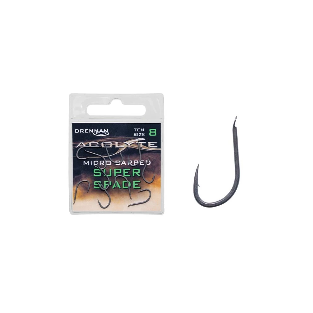 Az Acolyte Super Spades egy jól bevált horogminta, amelyet ereje és megbízhatósága tett híressé. Az új, továbbfejlesztett Acolyte gyártási technológiával készülve még erősebbek lettek és rendkívül éles, ívelt, hosszú élettartamú tűhegyet kaptak. Tökéletes választás nagyhalas folyóvízi horgászathoz. Szakállas kivitelben érhetők el, erős PTFE bevonattal, 8-as, 10-es, 12-es, 14-es és 16-os méretekben.Kiszerelés: 10 db/csomag