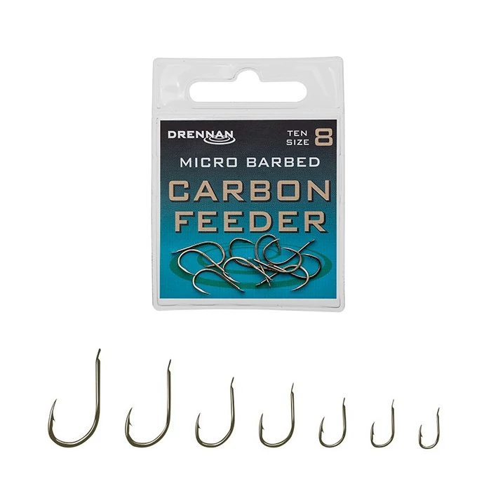 Drennan Carbon Feeder mikroszakállas klasszikus feeder lapkás végű horog. Rövid szárú, kerek ívelt formájú, kovácsolt horog, vegyileg élezett horogheggyel, magas carbon tartalommal. Ez a horogtípus ideális mindenféle feederes horgászathoz folyókon, csatornákon és állóvizeken, ahol a szakállas horgok használata engedélyezett.Kiszerelés: 10 db/csomagKapható méretek: 2 - (0,81 mm) 4 - (0,76 mm) 6 - (0,71 mm) 8 - (0.64mm) 10 - (0.56mm) 12 - (0.53mm) 14 - (0.48mm) 16 - (0.43mm) 18 - (0.38mm) 20 - (0.36mm)