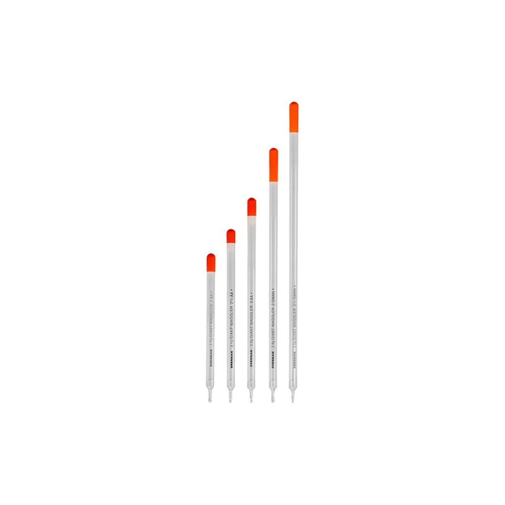A Giant Waggler úszók átlátszó, egyenes testtel készülnek, vastagabb csúccsal a jobb láthatóság és felhajtóerő érdekében. A Giant Waggler úszók éppolyan jó felhajtóerejűek, mint a pávatollból készült változatok, ráadásul következetesek, pontosak, jól dobhatók és tökéletesen működnek horgászat közben is. Mint minden waggler esetében, ezeket is csak alsó rögzítéssel kell használni. Terhelés nélküli kivitelben készülnek és öt különböző méretben érhetők el.Kapható méretek: No1: 2AA+ (1.7g) No2: 2.5AA+ (2.1g) No3: 3AA+ (2.5g) No4: 2Swan+ (3.4g) No5: 2.5Swan+ (4.2g)