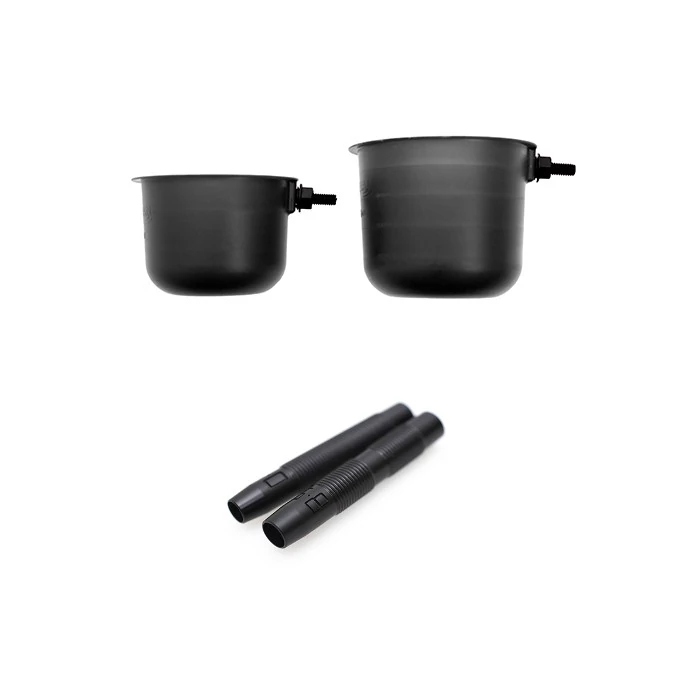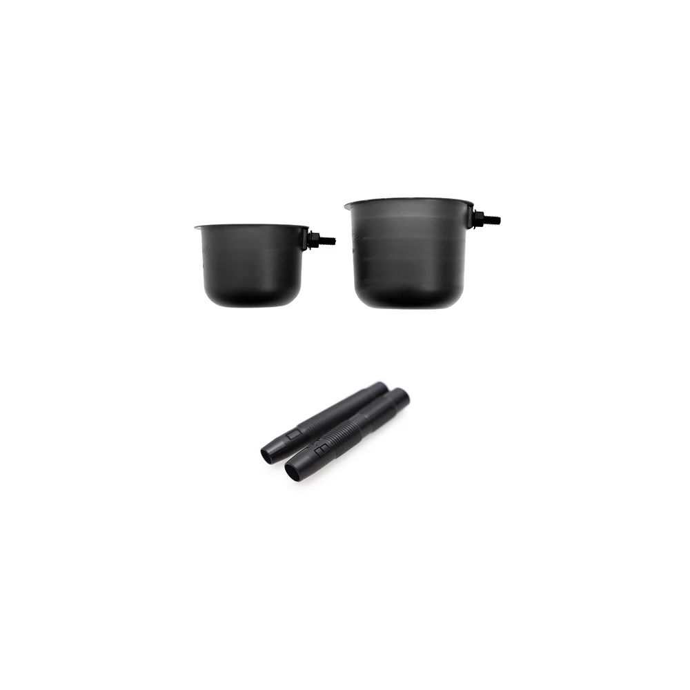 150 ml, 250 ml csésze, 2 db csatlakozóval. Ezek a csészék merevek, strapabírók és könnyűek – nélkülözhetetlen kiegészítők minden rakósbotos horgász számára! Emellett hasznosak lehetnek az etetőanyag pontos kiméréséhez is, ami különösen fontos a hidegebb hónapokban történő horgászatnál.