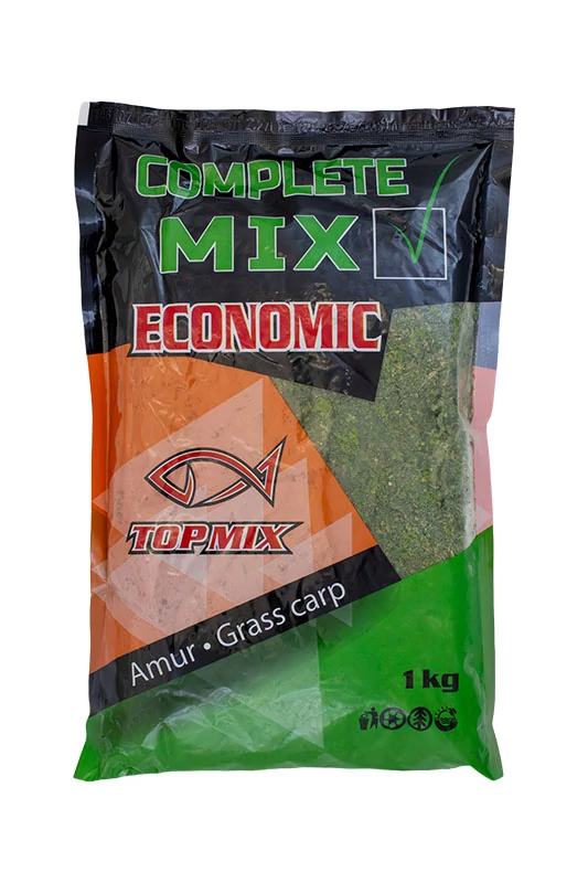 Amur horgászatához készített közepes szemcsézetű zöld színű, fokhagyma-vajsav ízesítésű etetőanyag. Az ECONOMIC COMPLETE MIX etetőanyag azonnali használatra kész állapotban van a zacskóban, további nedvesítése nem szükséges! Természetesen más etetőanyagokkal, vagy adalékokkal (micro pelletek, magvak) kiválóan keverhető.