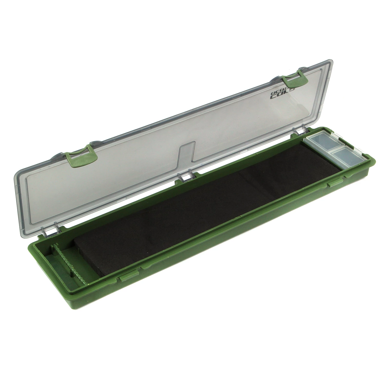 Horgok és előkék tárolására alkalmas előketartó doboz. Az erős műanyag konstrukció biztonságos, sérülésmentes tárolást tesz lehetővé.