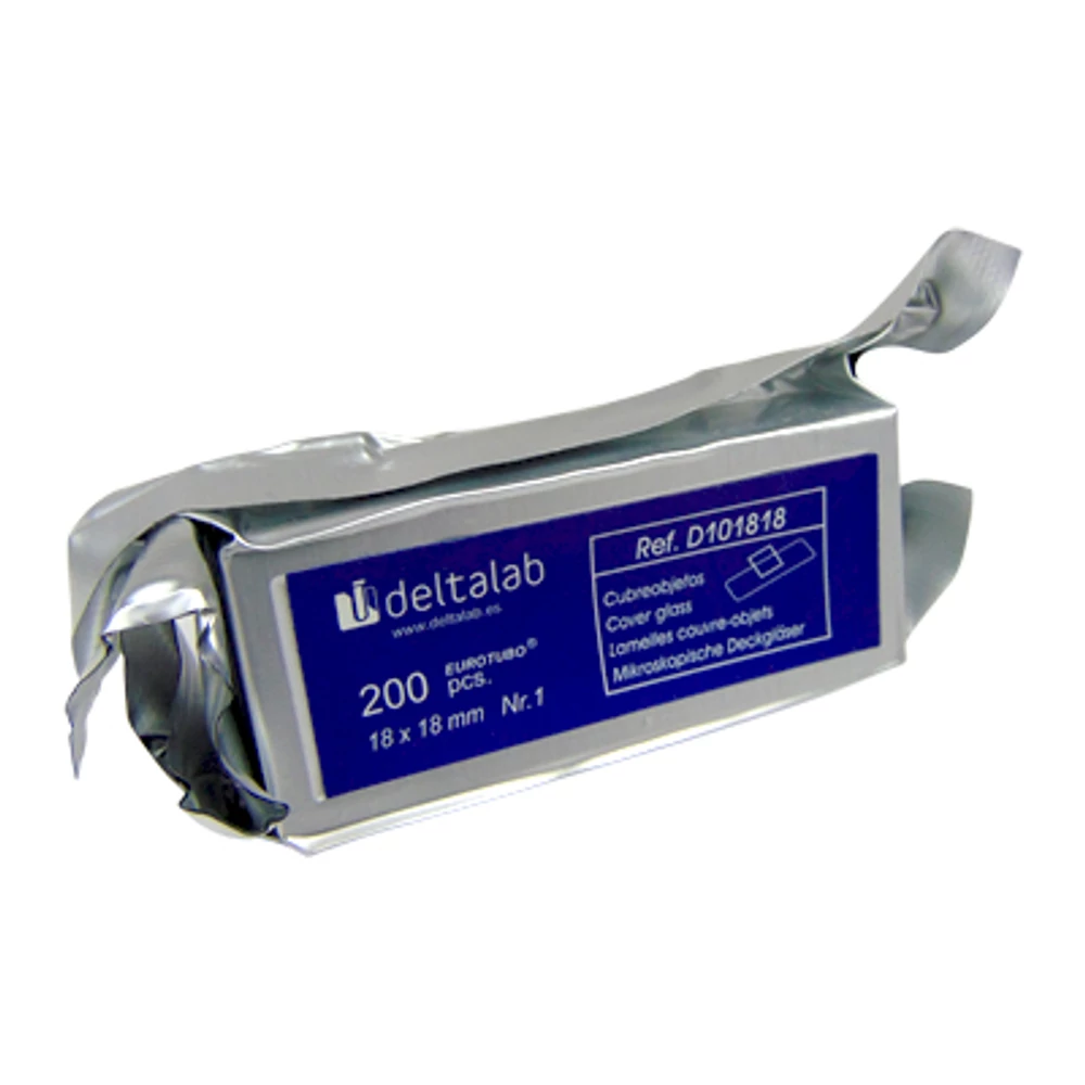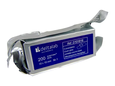 Eurotubo fedőlemez, 18x18 mm, 200 db/doboz A minta és a lencsék védelmére. Tiszta, előmosott üveg. Vastagság: 0,13-0,16 mm. A csomagok tartalmaznak egy tasak szilícium-dioxid sót.