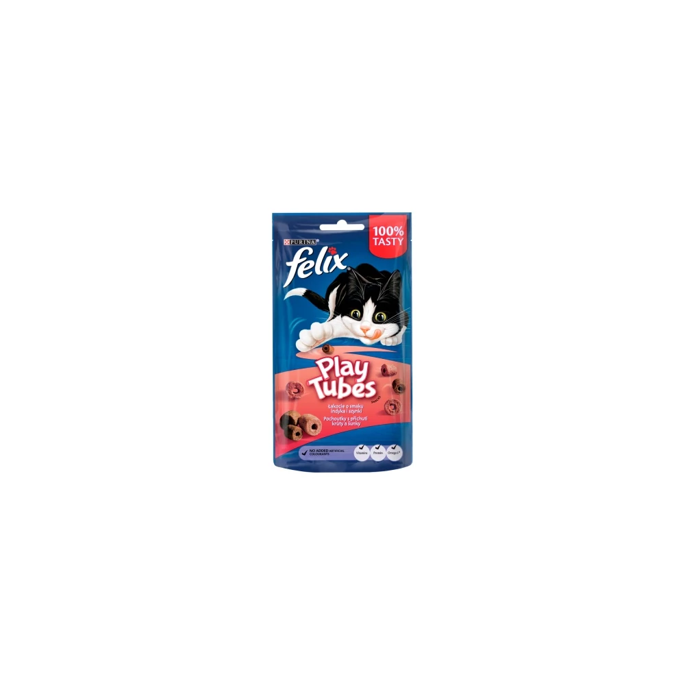 - Egyedi, hengeres alakja, kettős ízesítése, változatos méretei és a macskája által ismert és szeretett Felix jutalomfalatok íze ellenállhatatlanul játékossá teszi.