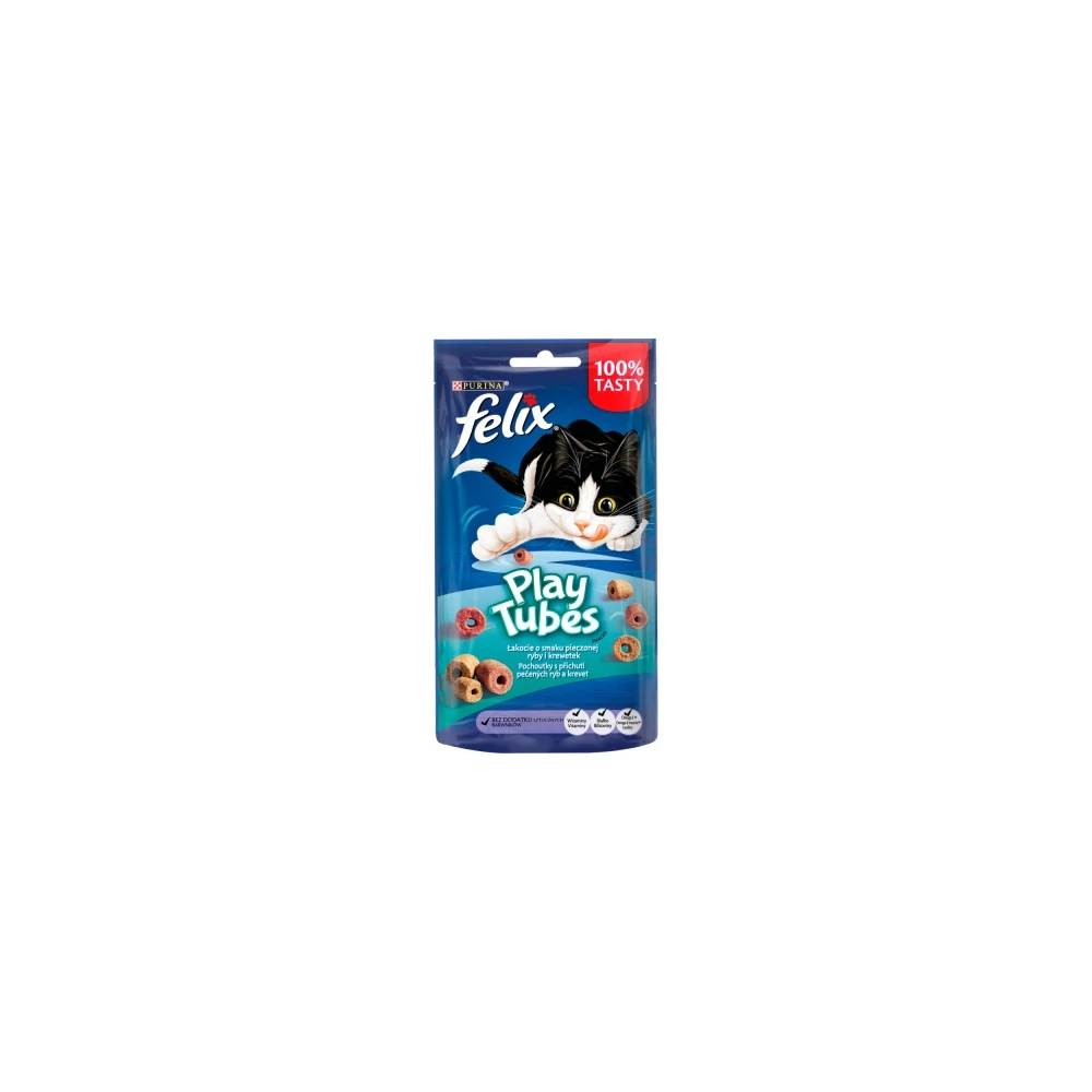 - Egyedi, hengeres alakja, kettős ízesítése, változatos méretei és a macskája által ismert és szeretett Felix jutalomfalatok íze ellenállhatatlanul játékossá teszi.