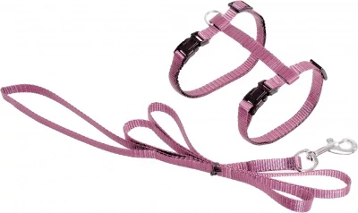 A hám kattanós csattal és a póráz karabinerrel rendelkezik
