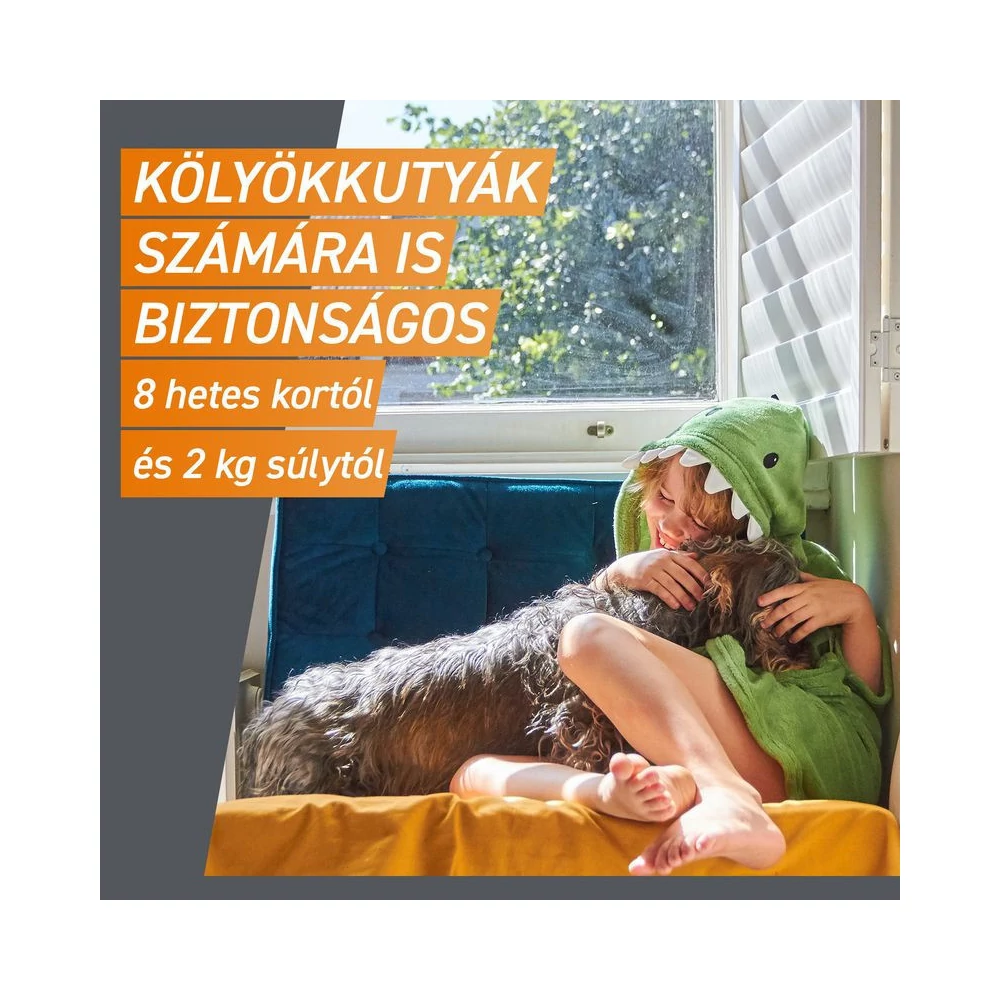 Gyógyszerforma: Rágótabletta. Vörös-vörösesbarna foltos, kör alakú (tabletta kutyáknak 2–4 kg) vagy téglalap alakú (tabletta kutyáknak > 4–10 kg, tabletta kutyáknak > 10–25 kg és tabletta kutyáknak > 25–50 kg). Célállat faj(ok): Kutya Terápiás javallatok célállat fajonként: Kutyák bolhafertőzésének (Ctenocephalides felis és C. canis) kezelésére legalább 5 héten át. Kutyák kullancsfertőzésének (Dermacentor reticulatus, Ixodes ricinus, Rhipicephalus sanguineus) kezelésére. Egyetlen kezelés legfeljebb egy hónapon keresztül elpusztítja a kullancsokat. A bolháknak és a kullancsoknak meg kell telepedniük a gazdán és el kell kezdeniük táplálkozni ahhoz, hogy a hatóanyag hasson rájuk. Az FRONTPRO a bolhákat 8 órán belül, a kullancsokat 48 órán belül elpusztítja. A készítmény a peterakás előtt elpusztítja a bolhákat megelőzve a lakás szennyeződését.