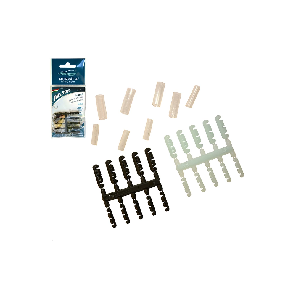 Könnyen fel- és leszerelhető ütköző, mely a horgászzsinóron szabadon csúszó eszközök ütköztetésére szolgál. Egy csomag 5 db kicsi és 5 db nagy méretű ütközőt tartalmaz.