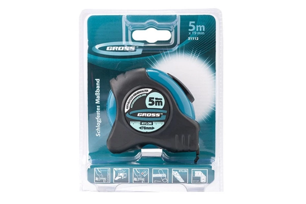 A Gross márka garancia a tökéletességre. A márka származási országa Németország. A Gross termékek mindegyike kiváló alapanyagokból, remek kidolgozással, strapabíró de kényelmes felhasználói élményt nyújtó alkalmazásokra készült.A Gross Schlagfest mérõszalag egy nagy pontosságú mérõmûszer. A mérõszalag kiváló minõségû anyagokból készül, mindkét oldalán található osztás. A felület speciális nylon bevonattal, az ergonómikus test ABS mûanyagból készül, amely 1,5 m magasságból történõ leeséskor megóvja az eszköz épségét. A mérõszalag megfelelõ rugalmassági tulajdonságokkal rendelkezik, ami lehetõvé teszi a nehezen elérhetõ helyeken történõ mérést. A mérõszalag vége True Zero gumírozott mágneses kampóval van ellátva, amely nemcsak lapos, hanem gömbölyû felületeken (például csöveken) is rögzítést biztosít. A True Zero vég lehetõvé teszi, hogy a külsõ / belsõ méréseknél pontosan mérjünk nulláról. A szalagra csuklópánt van rögzítve.
