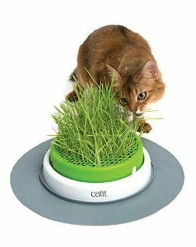 Az új és továbbfejlesztett fűültető mélyebb tállal rendelkezik, amely képes a tökéletes mennyiségű vermikulit befogadására. Emellett további vízelvezető lyukakkal is rendelkezik, amelyek segítenek megakadályozni a túlöntözést. Alacsony és stabil kialakítás, speciális ráccsal borítva a felborulás és az ásás megakadályozása érdekében. A Catit macskafű készlettel (#43162) használható. A macskafű serkenti a macska emésztését és segít megelőzni a szőrlabda-képződést. Egészséges alternatíva a gyakran mérgező szobanövényekre. BPA-mentes anyagokból készült.