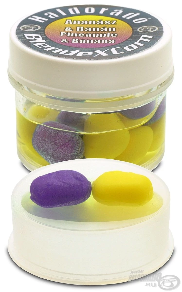 A BlendexCorn nem más, mint a népszerű BlendeX Pop Up csalik feltűnő színeivel és intenzív aromáival készült új gumikukorica (SpéciCorn) család, amely 6 különböző változatban kerül forgalomba. A kísérletező kedvű horgászok így már 7 különböző színű (citromsárga, narancssárga, fehér, piros, zöld, lila, fekete) csalik közül válogathatnak, amelyek között garantáltan ott van fogós csali MINDEN helyzetben! Méretük, állaguk, felhajtóerejük azonos a normál méretű SpéciCorn csalikkal, itt is minden tégely 10 db finom aromában ázó gumi kukoricaszemet tartalmaz, melyek ízenként eltérően két-két különböző színben vannak jelen. Ebben a családban minden különleges és fogós színváltozat megtalálható. Ezek közül talán a lila, kék és a fekete a legkülönlegesebbek, legszokatlanabbak. Ezek a csalik egy világos kajakupac közepén szinte "világítanak". Nagyon hatásosak akkor is, amikor egy tiszta áttetsző vízben, a hagyományos sárga, narancs, piros színek már gyanúsak a halaknak. No, akkor különösen érdemes ezeket a szokatlan színű csalikat bevetni!