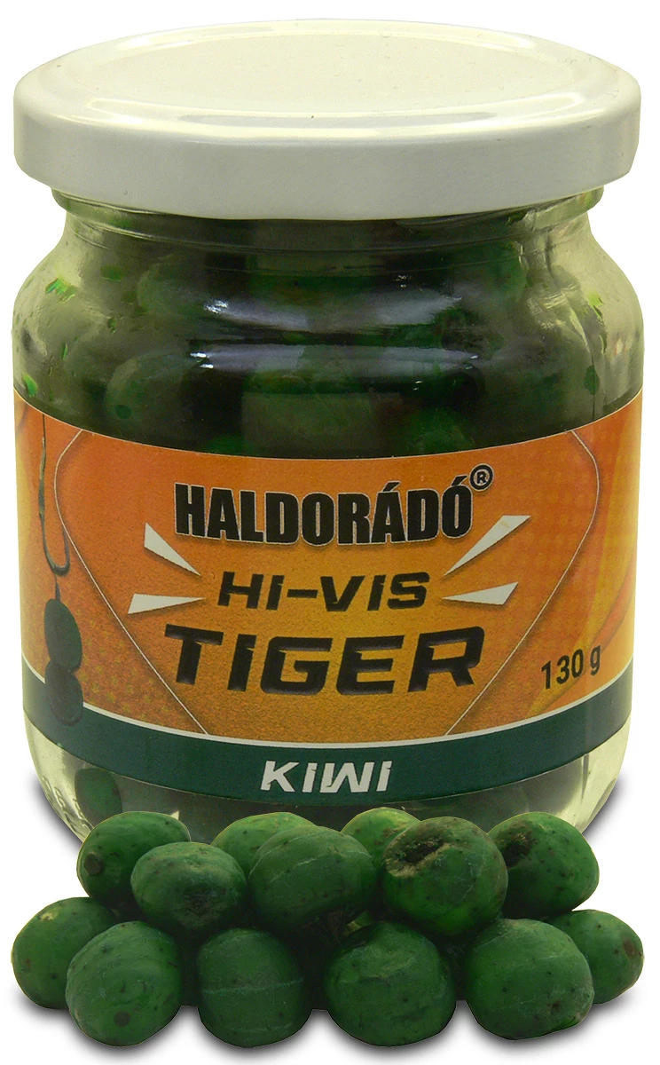 Ez a csalizó tigrismogyoró nemcsak rendkívül intenzív ízével és aromájával, hanem High Visual, azaz magas vizuális ingerrel, vagy másként tökéletes láthatóságával is kitűnik a mederfenéken vagy az etetési szőnyegen. Egy forradalmian új technológiával sikerült úgy ízesíteni és színezni a szemeket, hogy azok akár napok múlva is ontják magukból a csábító, finom aromát. Ha a szemeket kettétörjük, akkor válik láthatóvá, hogy teljes keresztmetszetében (nem csak a külső felületén) vannak színezve és ízesítve. Nagyon fogós természetes csali, amely bárhol bevethető, legyen szó ponty, vagy amur horgászatáról. A Hi-Vis Tiger négyféle szín- és ízválasztékban érhető el: az Ananász + Banán sárga színű, a Nagy Ponty bordó, a Mangó narancssárga, míg a Kiwi zöld színű.