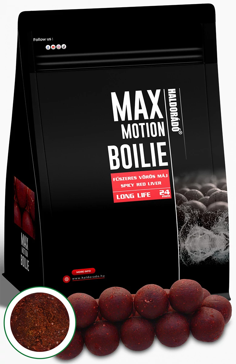 HALDORÁDÓ MAX MOTION Boilie Long Life 24 mm - Fűszeres Vörös Máj