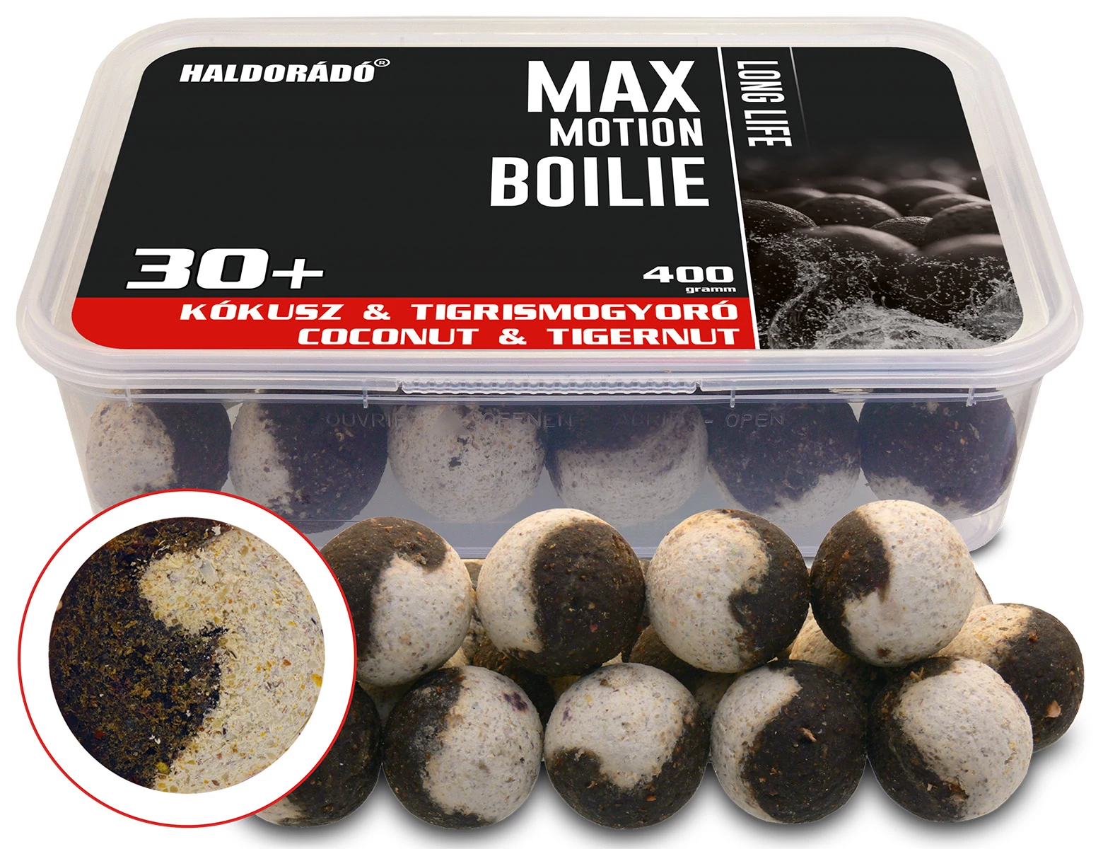HALDORÁDÓ MAX MOTION Boilie Long Life 30+ mm - Kókusz & Tigrismogyoró