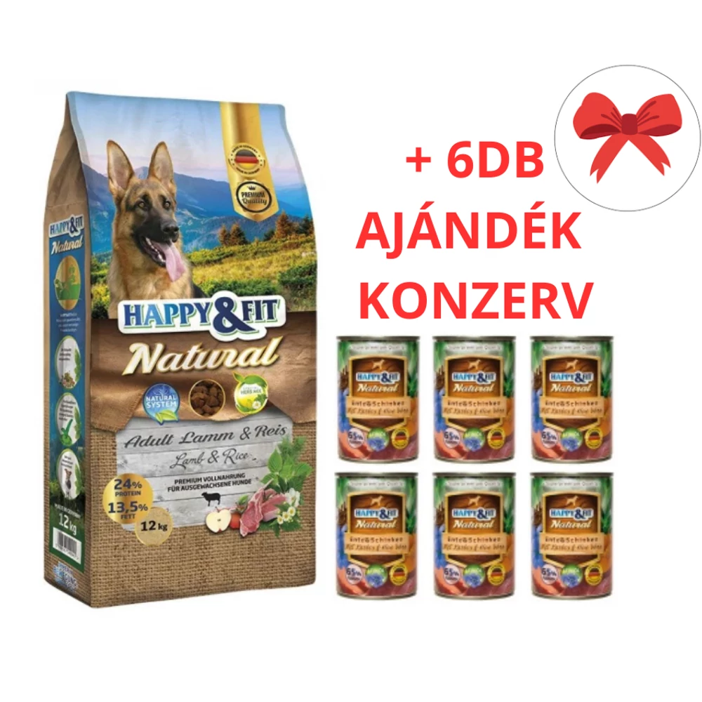 A Happy Fit Lamm Reis könnyen emészthető összetevőivel ideális választás az érzékeny kutyáknak. Az ízletes bárány, a szárított cukorrépapép és a nagyon jól emészthető rizs optimális emésztést biztosít. A bárányhús és a rizs kiváló táplálást biztosít minden fajtájú kutyának. A Happy Fit Lamm Reis táp ideális minden felnőtt, érzékeny emésztésű kutyának normál energia- és fehérjeszükséglet mellett. A Lamm Reis tápot szakértők állították össze, amely biztosítja a prémium minőséget kutyája kiegyensúlyozott táplálásához szükséges minden létfontosságú vitaminnal és ásványi anyaggal. A könnyen emészthető összetevők támogatják kutyája fittségét és jó közérzetét. A Happy Fit Natural Life System optimális táplálási támogatást nyújt Kedvencének természetes összetevőinek köszönhetően, úgy mint az alma, gyógynövények, antioxidánsok, vitaminok, nyomelemek. A Happy Fit tápok receptúrája nem tartalmaz hozzáadott mesterséges aromákat, búzaglutént, szóját, mesterséges ízfokozókat és tartósítószereket. A HAPPY FIT NATURAL ADULT LAMM REIS tápot felnőtt kutyáknak ajánljuk, akik kedvelik a változatos, finom ízeket. A táp ízletes bárányhúst, cukorrépapépet és rizst is tartalmaz, ezért érzékenyebb gyomrú kutyák is bátran fogyaszthatják, mivel ezek az összetevők könnyebben emészthetőek. Prémium minőségű, amelyet még a válogatós Kedvence is szívesen fogyasztanak. Főbb jellemzők: - Könnyen emészthető - Értékes állati eredetű fehérjék - Natural Life System – gyógynövények, antioxidánsok, vitaminok, nyomelemek - Nem tartalmaz mesterséges aromákat - Nem tartalmaz búzaglutént - Nem tartalmaz szóját - Nem tartalmaz mesterséges ízfokozókat és tartósítószereket Összetétel: baromfi fehérje (szárított), kukorica, rizs 17%, bárány fehérje (szárított) 7%, kukoricaliszt, baromfi zsír, cukorrépapép, hidrolizált fehérje, szárított almatörköly (1%), szárított sárgarépa, nátrium-klorid, kálium-klorid, szárított gyógynövények 0,1% (szárított csalán, szárított szederlevél, szárított cickafark, szárított kömény, szárított kamillavirág, szárított fagyöngy, szárított tárnicsgyökér, szárított ezerjófű). Analitikai alkotóelemek: fehérje 24,0%, zsír 13,5%, nyersrost 3,0%, nyershamu 6,3%. Adalékanyagok: tápértékkel rendelkező adalékanyagok / kg: A-vitamin: 14 000 NE, D3-vitamin: 1 400 NE, E-vitamin (mint minden RAC-alfa-tokoferol-acetát): 75 mg, Réz (mint réz-szulfát, pentahidrát) 11 mg, Cink (mint cink-oxid) 80 mg, Jód (mint kalcium-jodát, vízmentes) 2,2 mg, Szelén (mint nátrium-szelenit) 0,22 mg. Technológiai adalékanyagok: antioxidánsok.