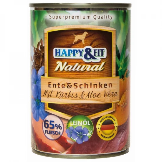 Happy&Fit Natural Dog Konzerv Kacsa&Sonka Sütőtökkel&Aloe Verával 400g