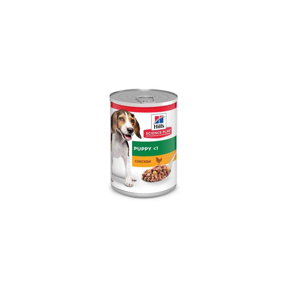 Hill's Science Plan™ Puppy Chicken konzerv: Tökéletesen kiegyensúlyozott táplálék az erős immunrendszerért és a mozgékonyságért klinikailag bizonyított hatású antioxidánsokkal és halolajból nyert DHA-val.- Klinikailag bizonyított hatású antioxidánsok az egészséges immunrendszerért.- Omega-3 zsírsavakkal, optimális mennyiségű ásványi anyag tartalommal támogatja a csontozat fejlődését.- Kiváló minőségű összetevőkből készült a könnyed emésztésért, és a nagyszerű ízért. 100% garancia.Fedje le és tartsa hűtőben a megkezdett konzervet! Kölyökkutyáknak/vemhes szukáknak: Kezdje az etetést a javasolt napi mennyiséggel! A feltüntetett mennyiségek csak tájékoztató jellegűek, mivel az egyes állatok szükséglete eltérő. Az etetett mennyiséget mindig úgy állítsuk be, hogy az lehetővé tegye az optimális testsúly megtartását! Ha bizonytalan, konzultáljon állatorvosával! Szoptató kutyáknak: Mindig legyen az állat előtt táp! Kölyöktáp kapható száraztáp és konzerves táp formájában is. Egyéb eledellel való kiegészítésük szükségtelen, és akár csökkentheti is a táp hatékonyságát. Ha száraztáppal etet, csökkentse a konzerves táp mennyiségét, hogy a túletetést elkerülje!Összetevők: Ízletes csirke (csirkehús minimum 30 %): Csirkehús, kukoricadara, gyöngyárpa, szójaliszt, sertésmáj, vas-oxid, dikalcium-foszfát, jódozott só, kalcium-karbonát, kálium-klorid, vitaminok és nyomelemek.