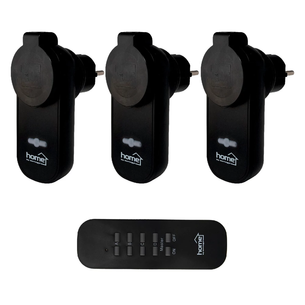 Home THO 113 3db-os távirányítható kültéri hálózati aljzatszett, 40 m hatótáv, IP44 védelem, max. 1000 W, rádiós összeköttetés, 230 V, fekete