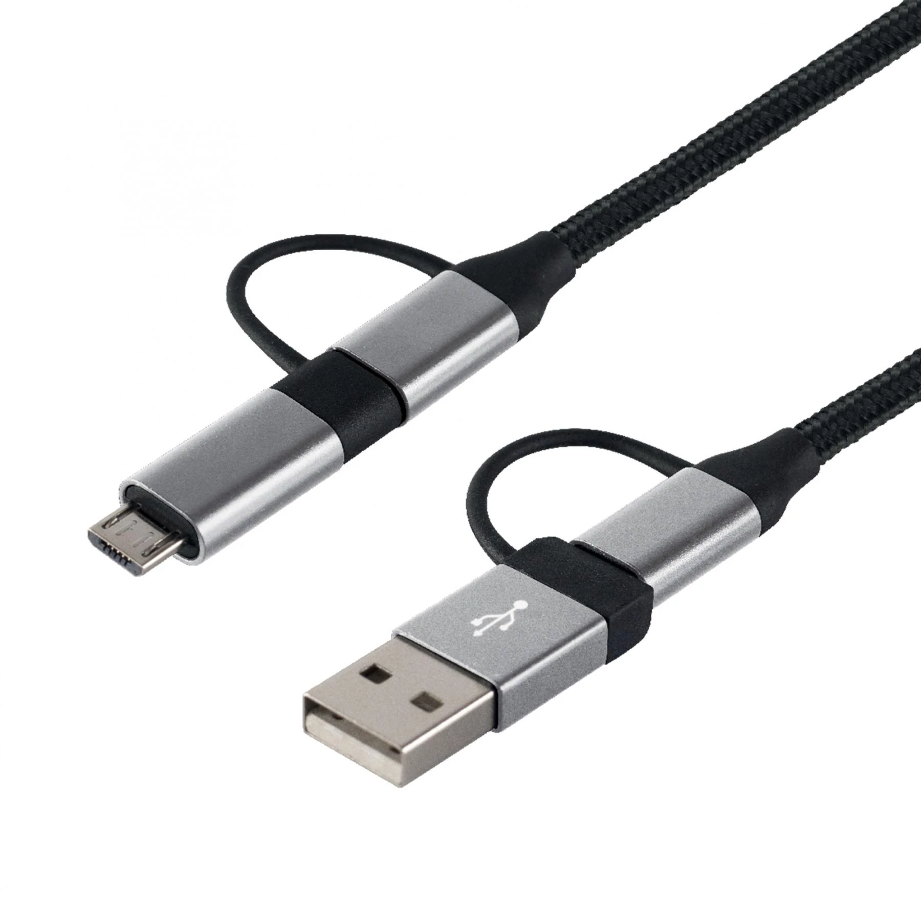 Home USB MULTI 4in1 töltőkábel, USB-C, microUSB, USB-A, QC, PD, szőtt nejlon, 480 Mbps, 60Wmax, 1,5m vezeték