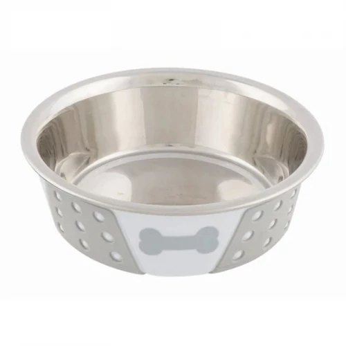 Trixie szilikonnal bevont fém tál 0,4l/14cm fehér/szürke