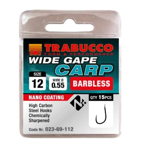 Trabucco Wide Gape Carp szakáll nélküli horog 20 15 db