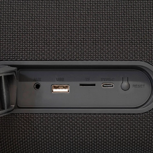 SAL BT9000 hordozható boombox, vezeték nélküli hangszóró, 100 W, IPX5, BT TWS, AUX, USB/microSD, Soft Touch gombok, ~10 h üzemidő, USB-C töltőkábel