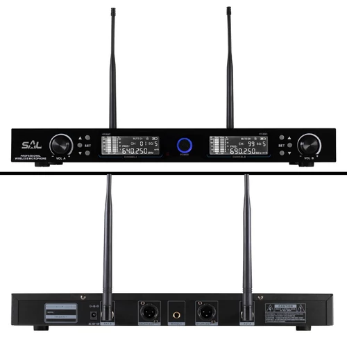 SAL MVN 910 vezeték nélküli mikrofonszett, digitális zajszűrés, 2x100 csatorna, ~140 m hatótáv, UHF frekvenciasáv, rack kompatibilis