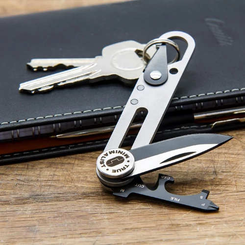 True Utility Minimalist, TU208K, multifunkcionális szerszám, designer kés, fekete titánbevonat, rozsdamentes acél penge