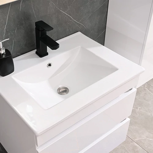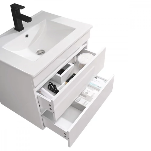 Cube 60 alsó fürdőszobabútor kerámia mosdóval 2 fiókos, magasfényű festett fehér