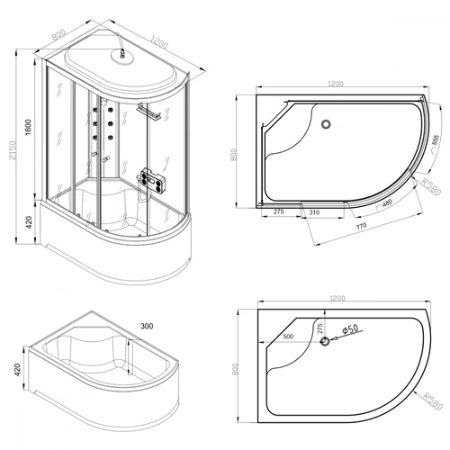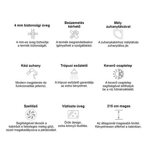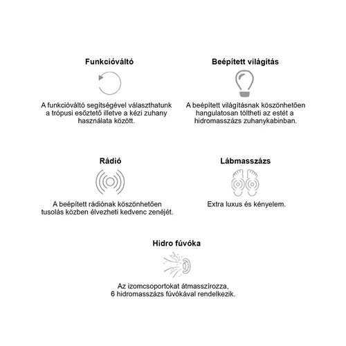 Lia hidromasszázs zuhanykabin balos beépítési oldallal