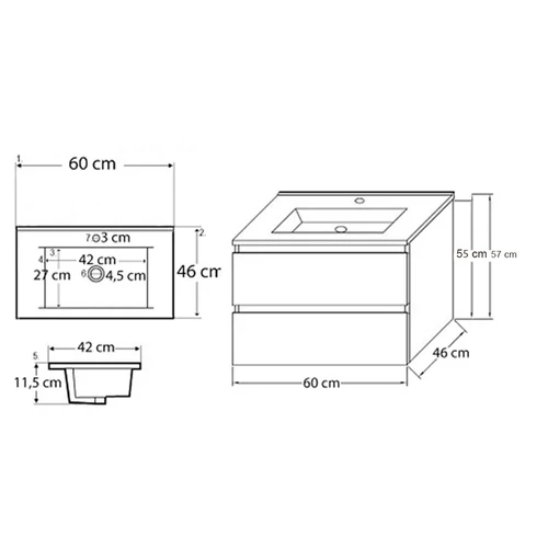 Porto 60 alsó fürdőszoba bútor mosdóval fehér színben