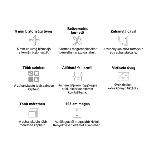 Polo White II szögletes fehér hátfalas zuhanykabin, akril zuhanytálcával, 90x90x195 cm-es méretben
